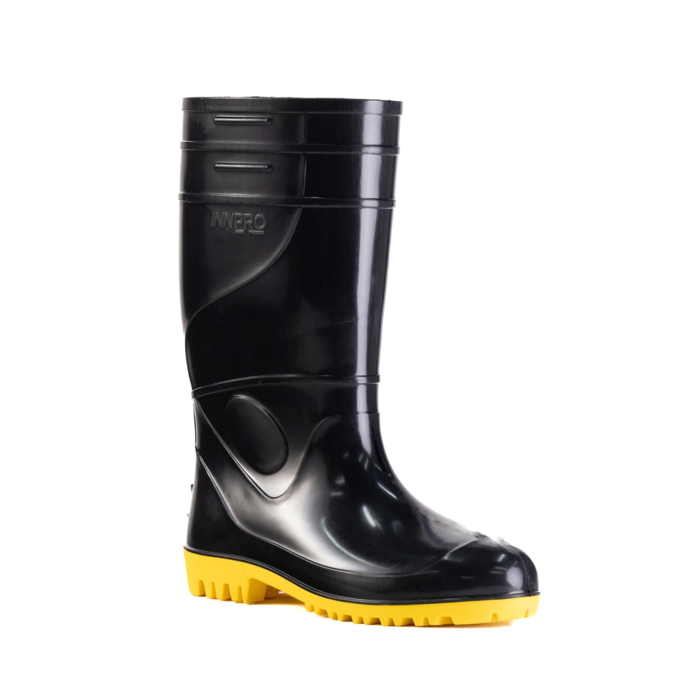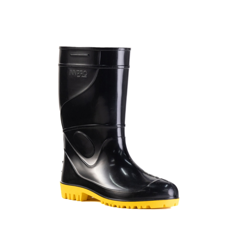Bota de Pvc Work Preta Sola Amarela Cano Médio