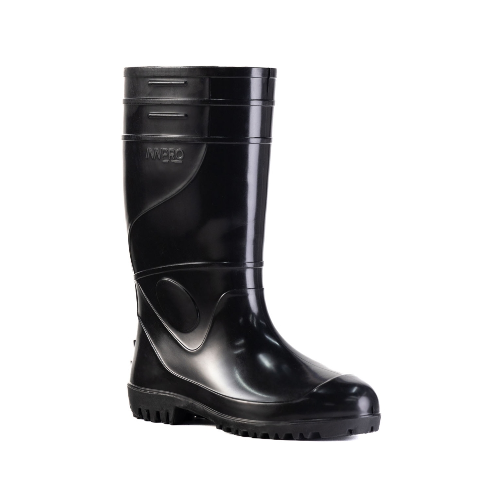 Bota de Pvc Work Preta Sola Amarela Cano Extra Curto